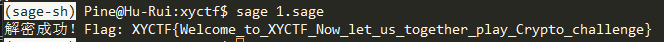 print("未找到有效根,请调整参数重试")XYCTF{Welcome_to_XYCTF_Now_let_us_together_play_Crypto_challenge}